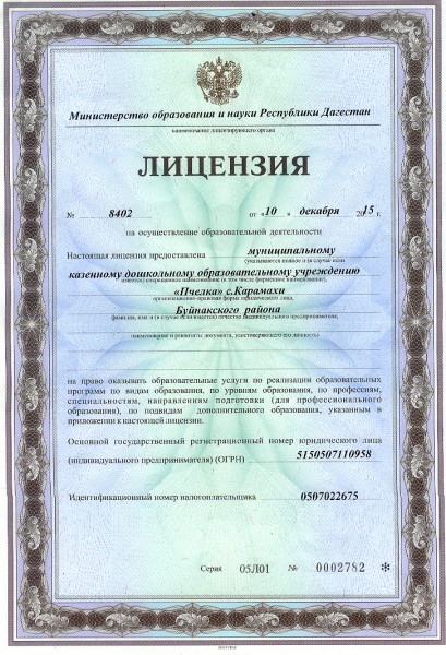 | Полное наименование образовательной организации* | Муниципальное бюджетное дошкольное образовательное учреждение "Пчелка" общеразвивающего вида с.Карамахи |